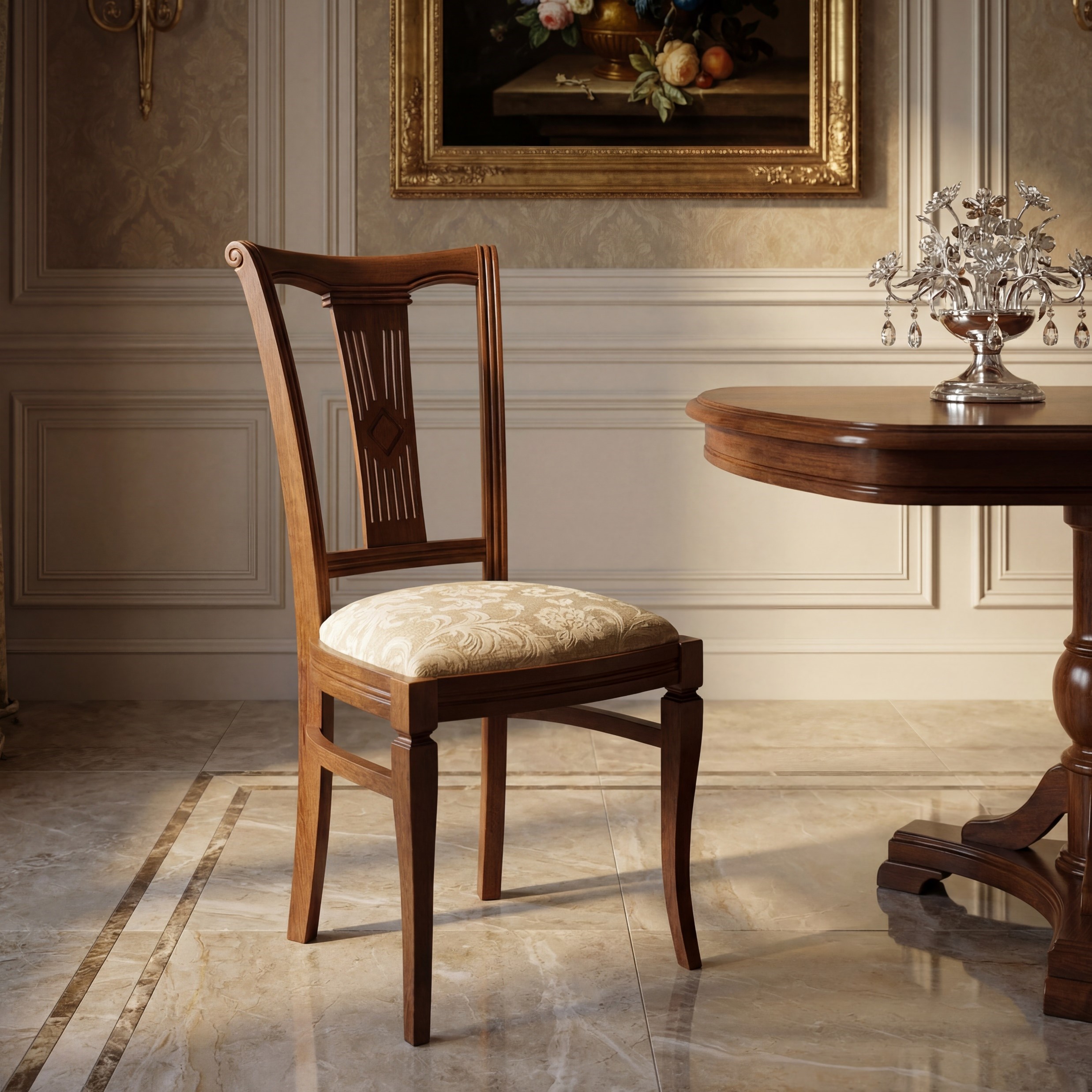 Καρέκλα τραπεζαρίας, με άνετη πλάτη. Κατασκευσμένη από ατόφιο ξύλο οξιάς, αποτελεί μια εξαιρετική επιλογή για κλασσική τραπεζαρία.