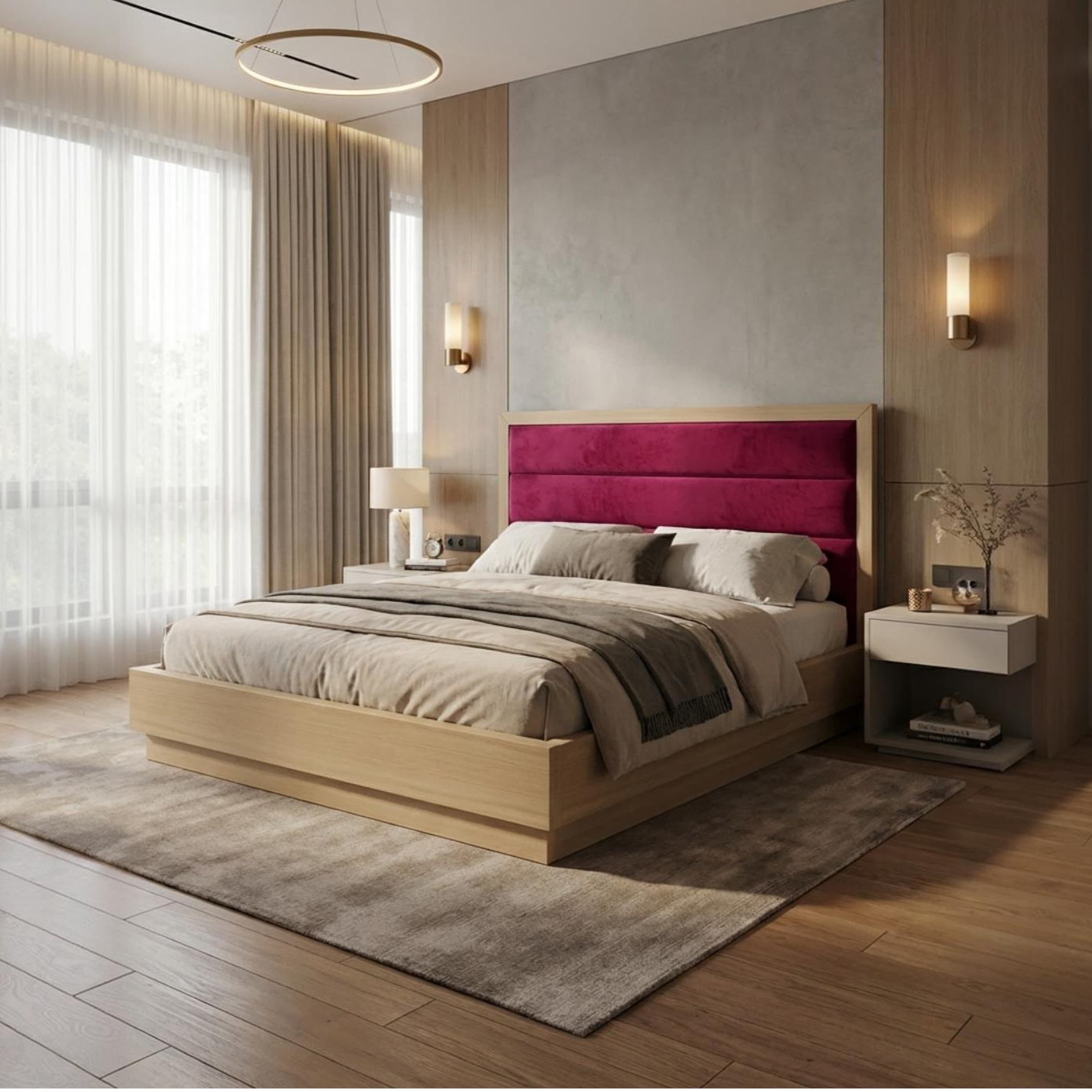 Μοντέρνο κρεβάτι σε ευθείες γραμμές, με άνετο κεφαλάρι. Παράγεται σε οποιαδήποτε διάσταση και χρώμα. Δυνατότητα κατασκευής και με αποθηκευτικό χώρο.