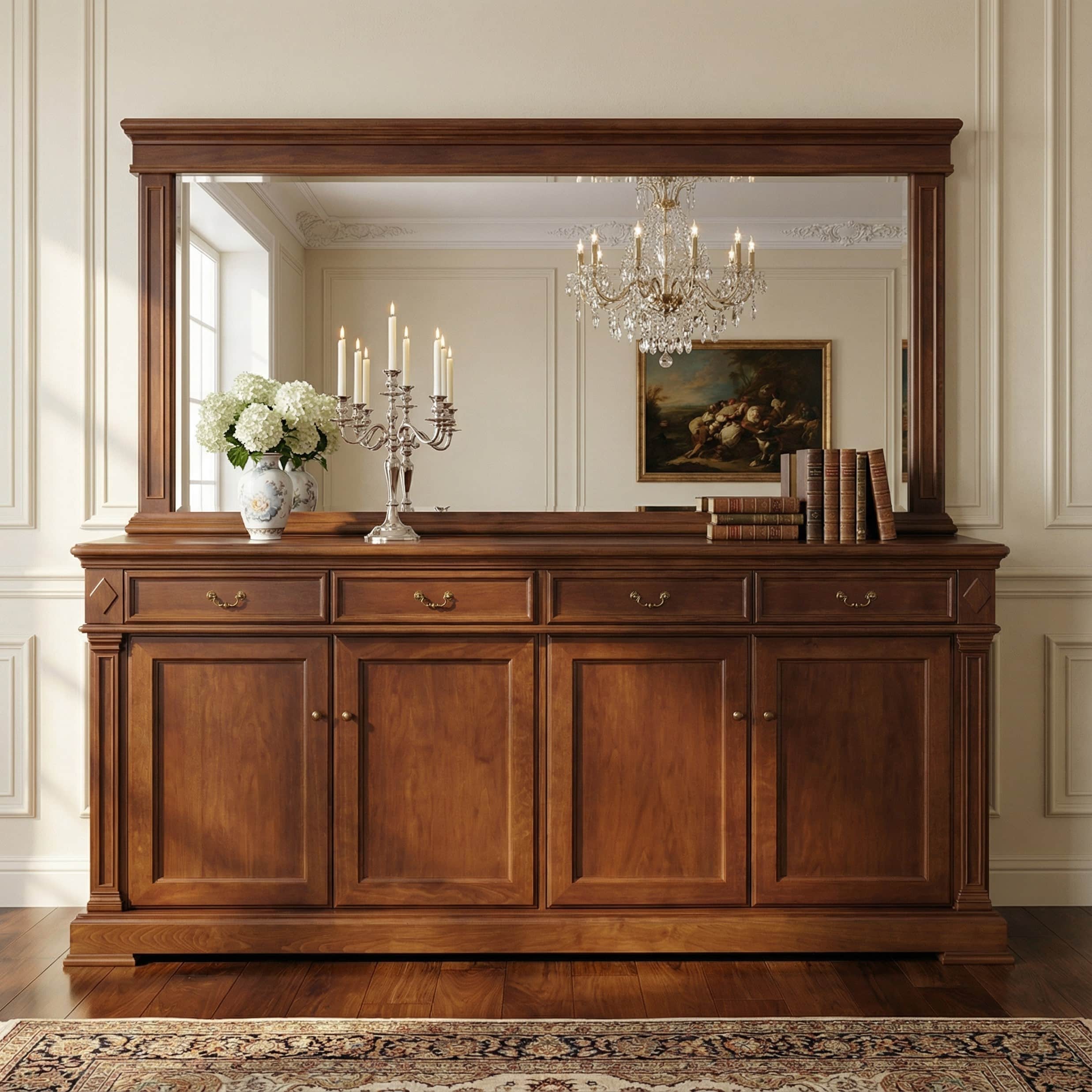 Εμπνευσμένος από την κλασική αισθητική, ο μπουφές ANAIS αποπνέει αέρα αριστοκρατίας και εκλεπτυσμένου στυλ. Κατασκευασμένος από υψηλής ποιότητας ξύλο, διαθέτει γραμμές που αποπνέουν κομψότητα και αρμονία. Συνδυάστε το με τον αντίστοιχο καθρέπτη, για να απογειώσετε το αποτέλεσμα.