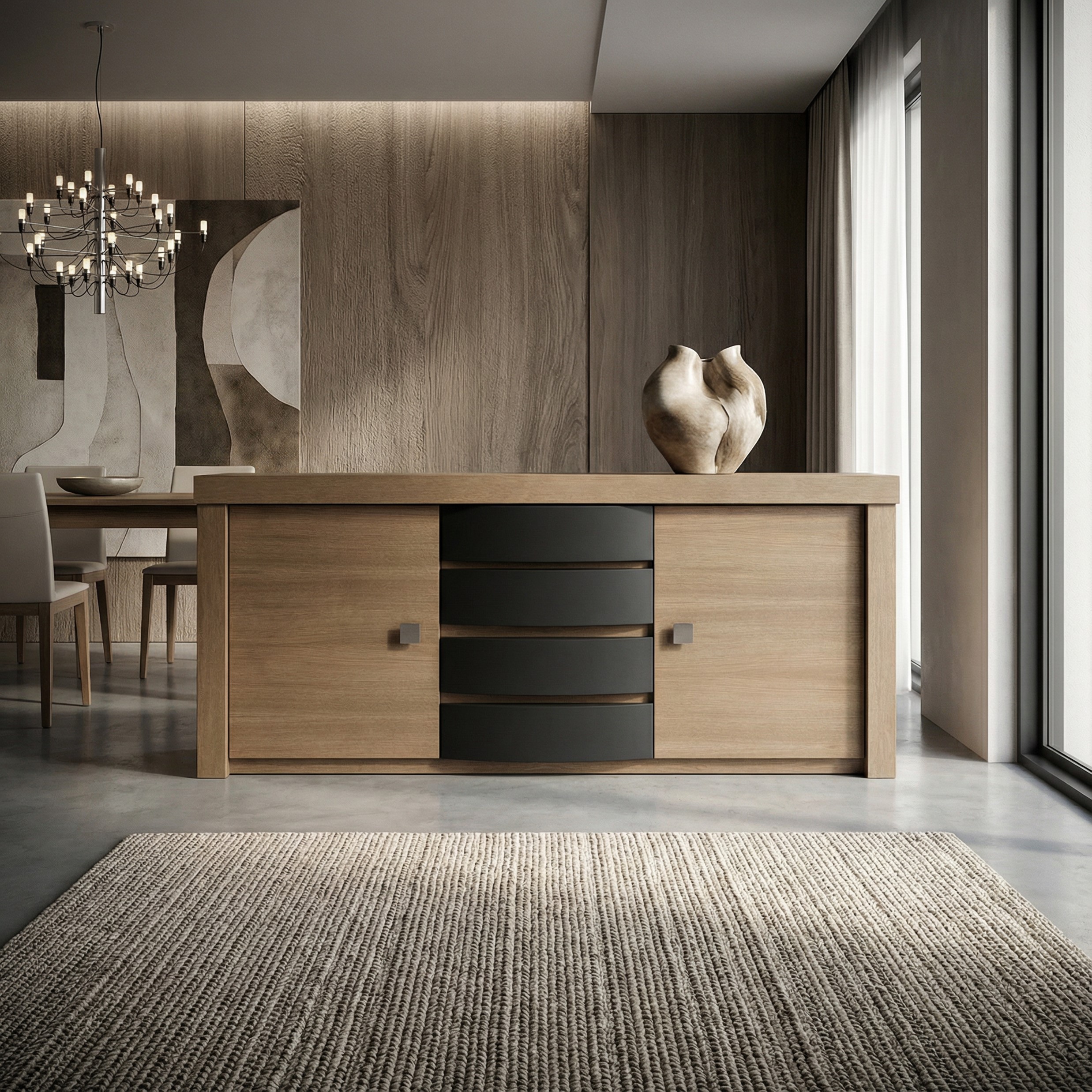 Ανακαλύψτε τον κόσμο της κομψότητας και της λειτουργικότητας με τον μπουφέ DOLCE. Κατασκευασμένος από υλικά υψηλής ποιότητας, συνδυάζει την αισθητική με την πρακτικότητα, για να δημιουργήσει έναν χώρο που εντυπωσιάζει.