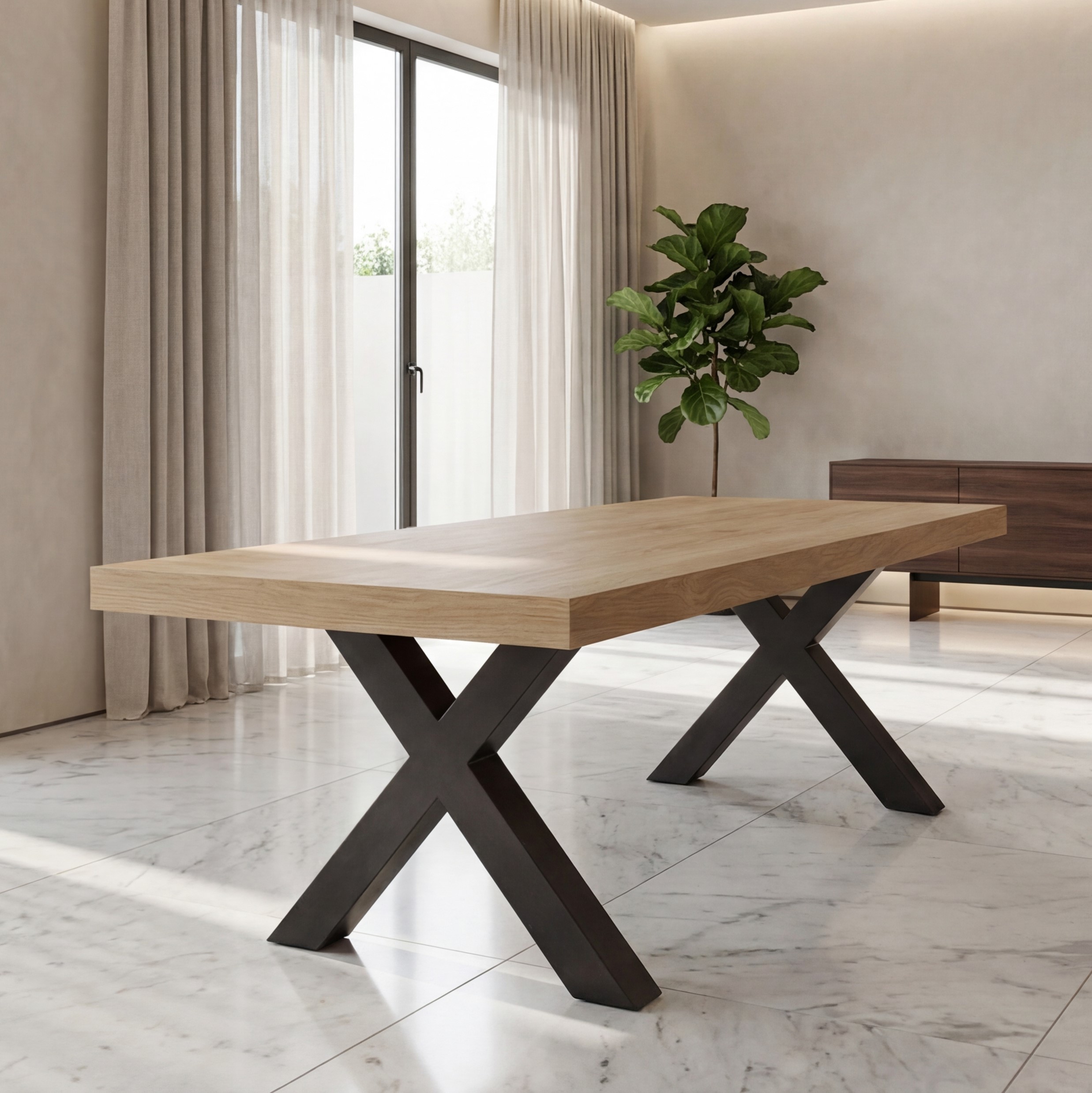 Μοντέρνα τραπεζαρία κατασκευασμένη από ξύλο δρυός, ιδανική για σύγχρονους χώρους.